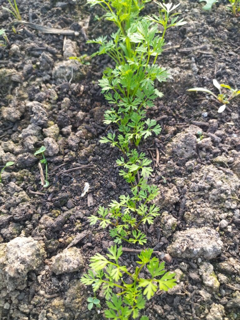 Concernant les carottes, nous avons essayé à ce jour 6 variétés différentes sans succès pour tenter de récolter des carottes nouvelles dès avril. Notre sol argileux est compact. La majorité des variétés de carottes n’arrivent pas à se développer dans ce sol lourd et certaines n’arrivent même pas à germer car les sols argileux mettent longtemps à se réchauffer, même sous serre.