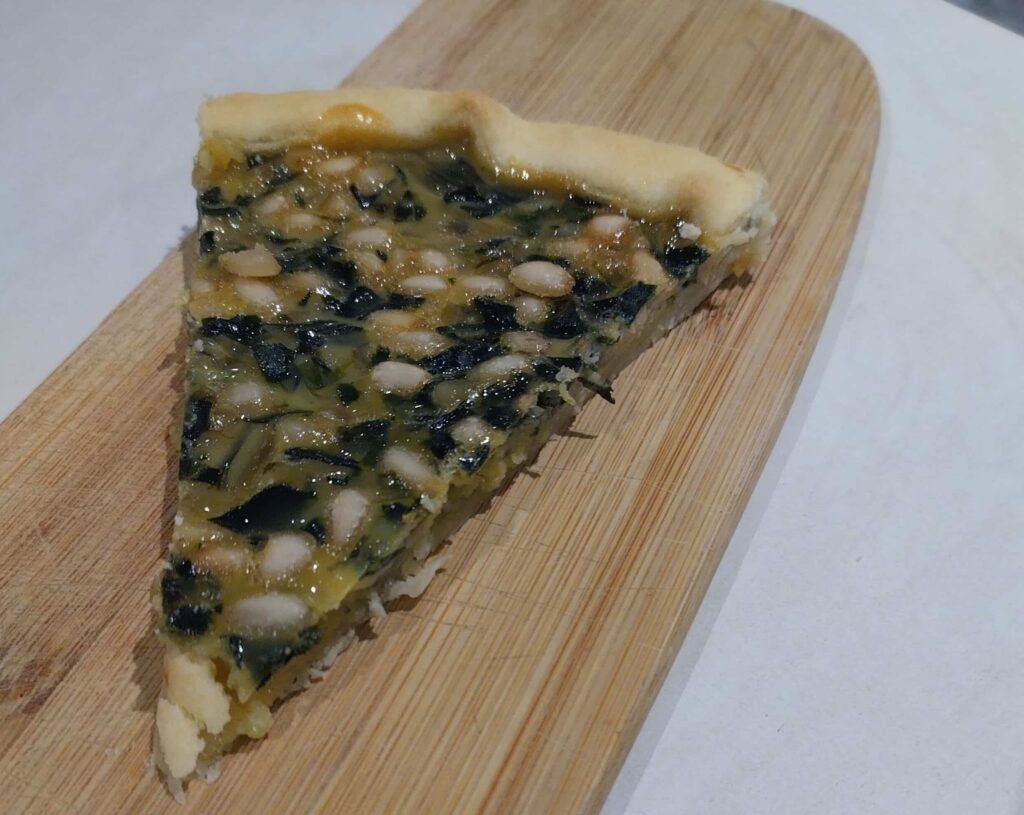 5. Étalez la pâte sablée au fond d’un moule à tarte et remplissez-la d’appareil aux blettes.